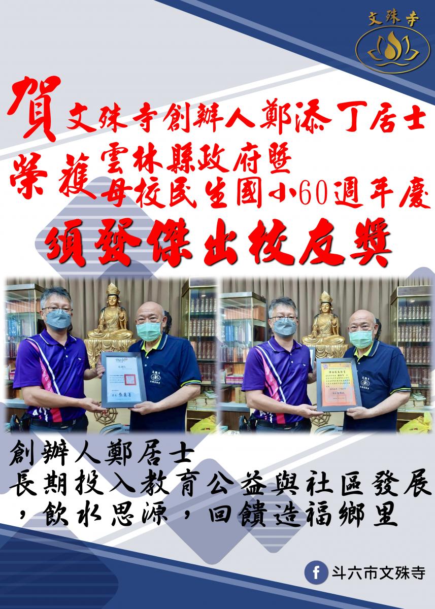 文殊寺創辦人鄭添丁居士榮獲傑出校友獎