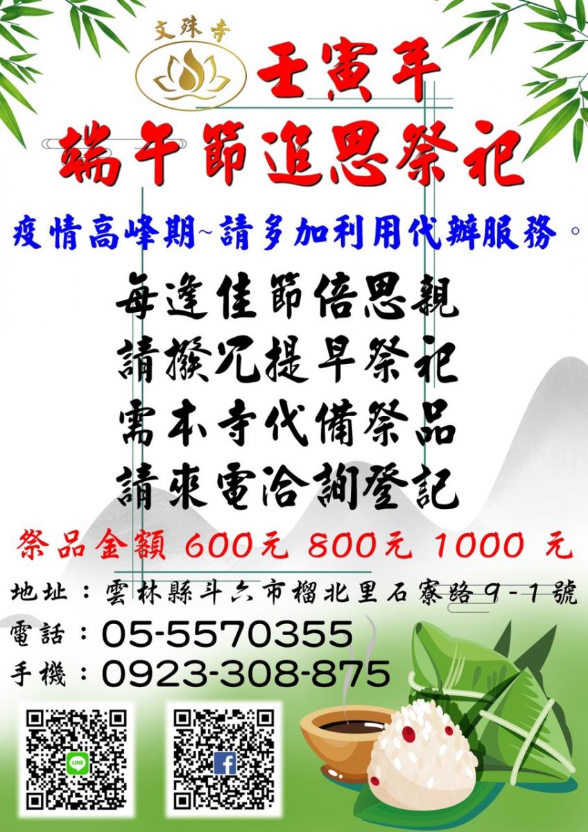 端午節追思祭祀-疫情當前請多加利用代辦服務