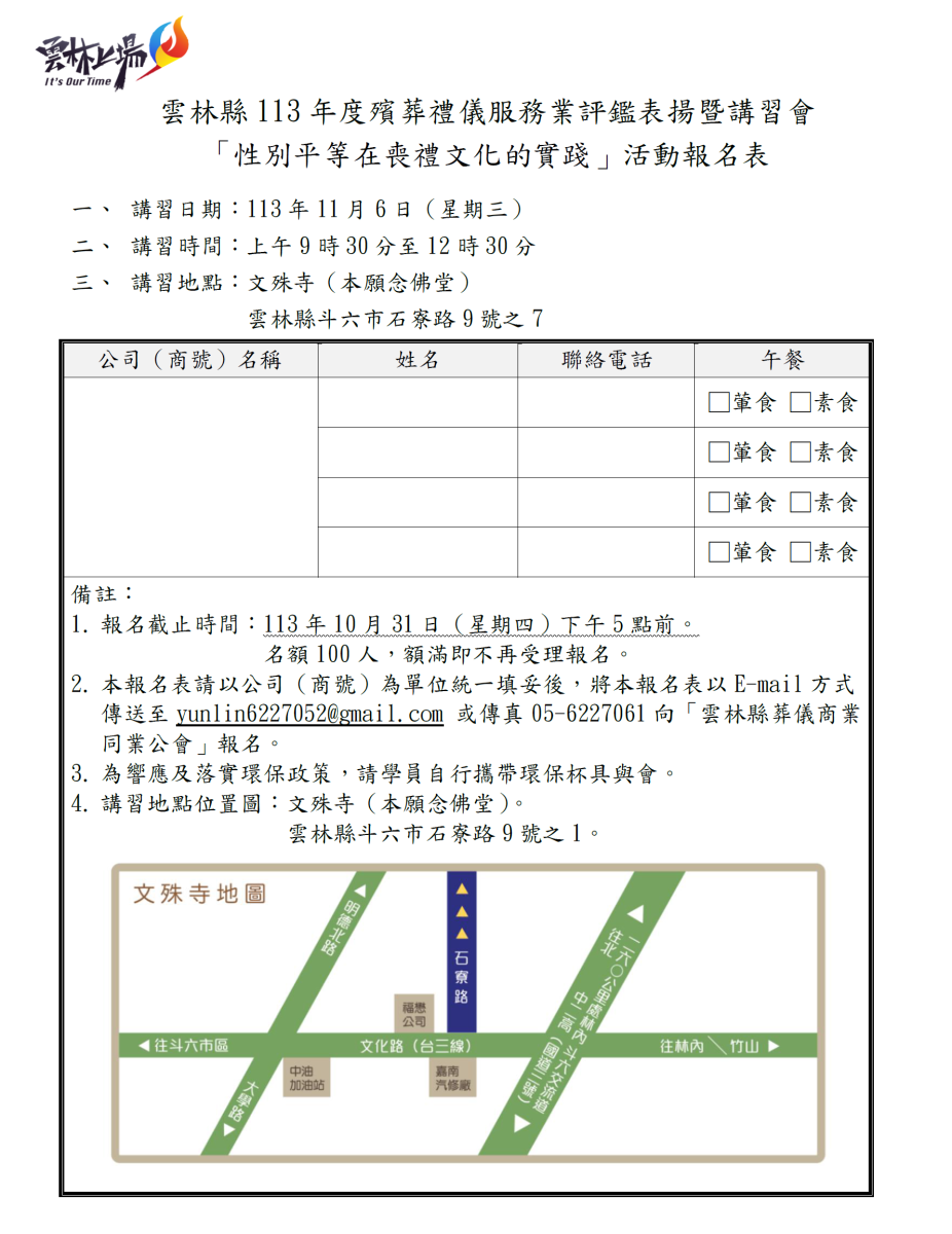 雲林縣113年度殯葬禮儀服務業評鑑表揚暨講習會 「性別平等在喪禮文化的實踐」